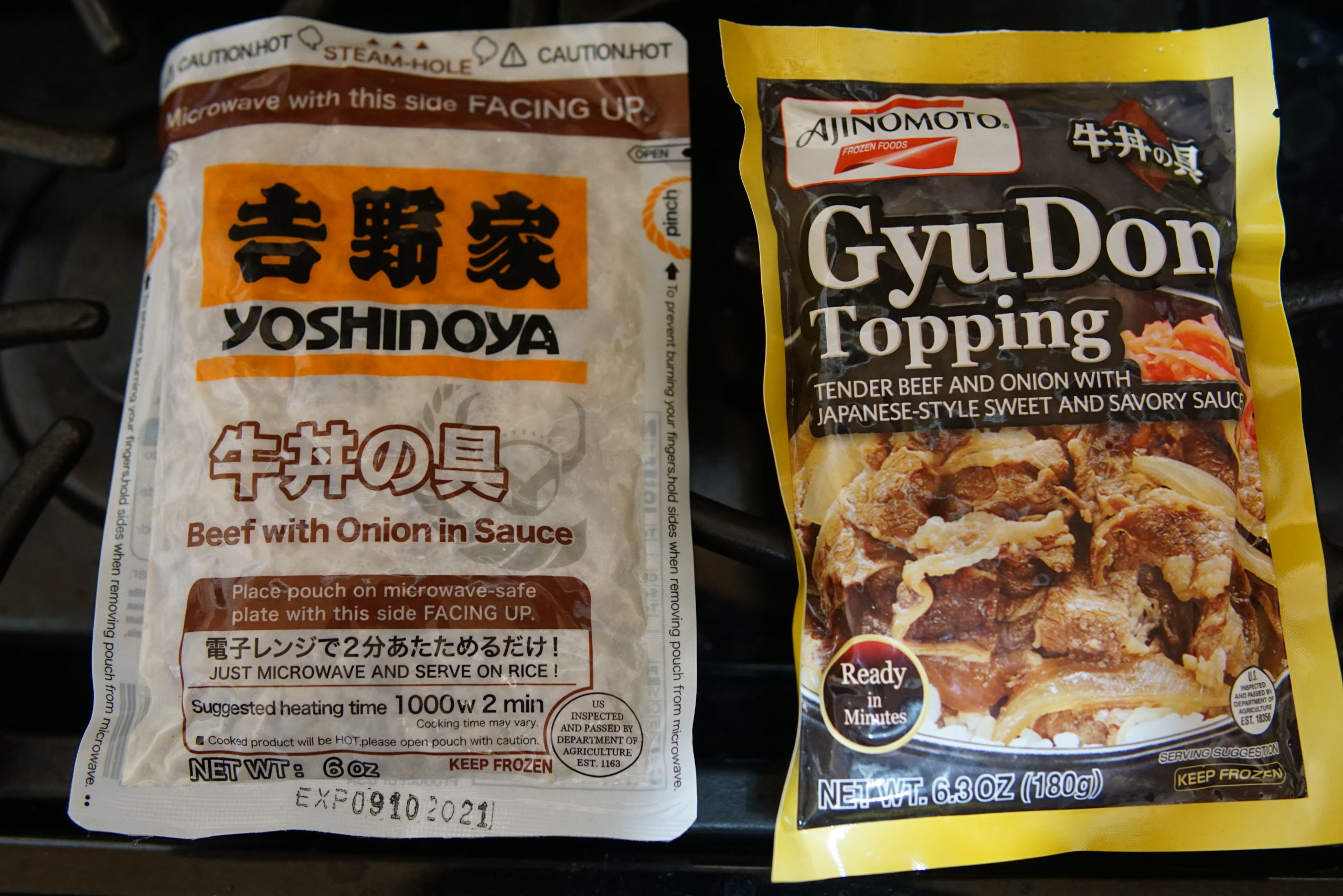 This comes frozen; you just nuke it for 2 or 3 minutes (depending on brand) and put it over year own bowl of rice. It’s not cheap as it costs $7.00 or so, +/-, whereas you can get a Halal food cart dish for $6.00, and I think beef bowls at the restaurant chains in Japan go for 300 – 500 yen.