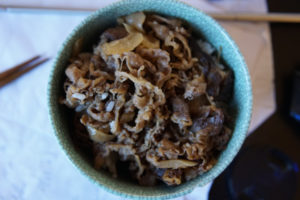 When I lived in Japan, people asked me what I missed most about the U.S. The answer was usually, NY pizza, bagels with cream cheese, roast beef wedge with Russian dressing, cheap steaks etc. Things like that. Now that I’m in the U.S., one of the things I miss most about Japan is the beef bowl, or gyudon. They used to have a Yoshinoya in Times Square, NYC, for a while, but that closed years ago.